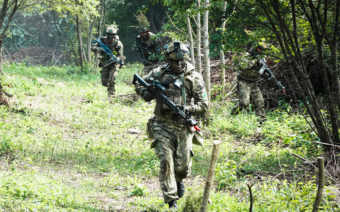 This photo, provided by the Army on Sept. 11, 2024, shows Uzbek soldiers participating in the second Korea-International Combat Competition at the Korea Combat Training Center, a facility employing cutting-edge technologies for realistic ground drills, in Inje, 126 kilometers northeast of Seoul. The one-week competition, starting on Sept. 9, includes participants from South Korea, the United States, Australia, Uzbekistan and Cambodia. (PHOTO NOT FOR SALE) (Yonhap)
