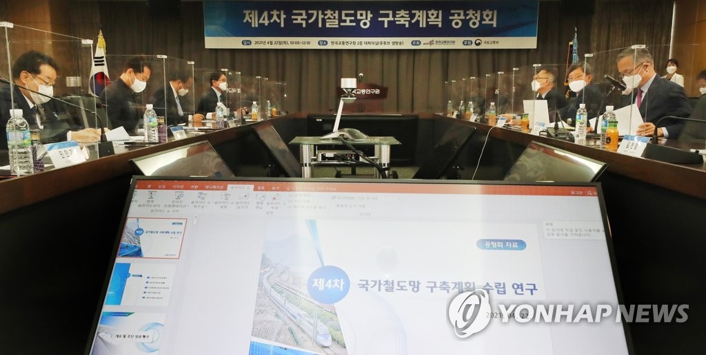 | ▲ 국내 철도망은 어떤 형태로 구축될까? (세종=연합뉴스) 김주형 기자 = 제4차 국가철도망 구축계획안에 대한 공청회가 22일 오전 세종시 국책연구단지에서 열리고 있다. 한국교통연구원 주최로 열린 이번 공청회에서는 철도 운영 효율성 제고, 지역 거점 간 고속이동 서비스 제공, 비수도권 광역철도 확대, 수도권 교통혼잡 완화, 남북 및 대륙철도 연계 대비 등 철도망 구축의 기본방향을 제시할 예정이다. 2021.4.22 kjhpress@yna.co.kr |