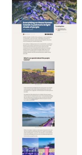 3월 26일 자 관련 기사는 신안의 퍼플섬을 '몽환적인 채색의 섬'이라며 '대한민국 방문 시 여행하기 좋은 새로운 여행지'라고 소개했다.