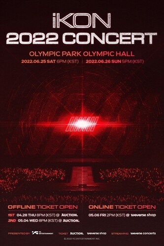 SEOUL, April 7 (Yonhap) -- iKON will hold a concert for the first time in 3 years and 6 months at the Olympic hall, Olympic Park, Seoul from June 25th to 26th, announced YG Entertainment.