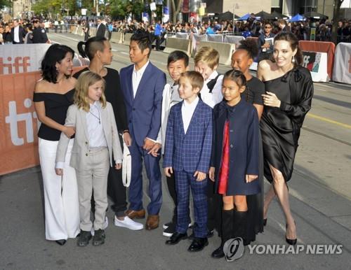| ▲ 2017년 토론토 영화제에서 포즈를 취한 앤젤리나 졸리와 6자녀, 자녀의 친구들 [EPA=연합뉴스] |