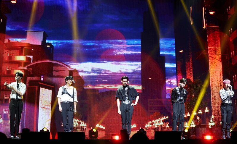 South Korean boy group Victon performs during a showcase to promote the group's seventh mini album "Chaos" in Seoul on May 31, 2022. (Yonhap)