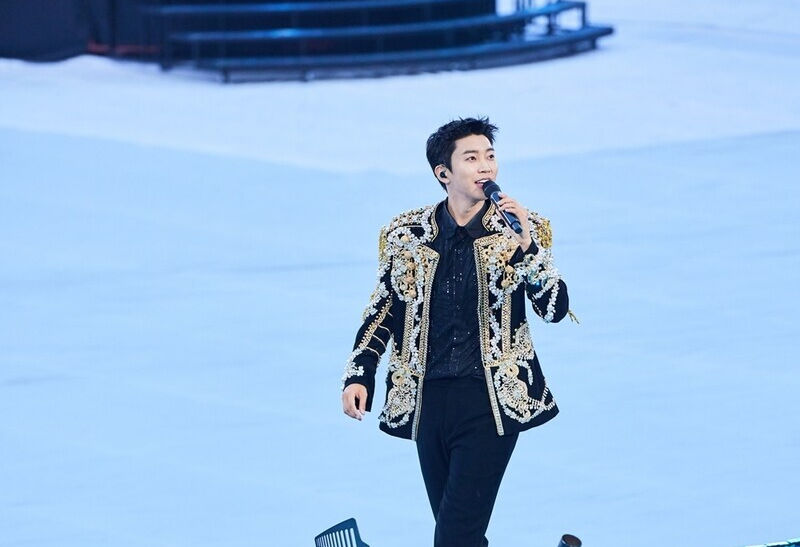 | ▲ Trot star Lim Young-woong performs at his solo concert "IM HERO - THE STADIUM" held in Seoul World Cup Stadium on May 26, 2024, in this photo provided by star management Mulgogi Music. (PHOTO NOT FOR SALE) (Yonhap) |