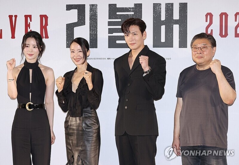 | ▲ From left: Korean lead actors Lim Ji-yeon, Jeon Do-yeon, Ji Chang-wook and director Oh Seung-wook pose for photos at the media conference for film "Revolver" held in Seoul on July 31, 2024. (Yonhap) |