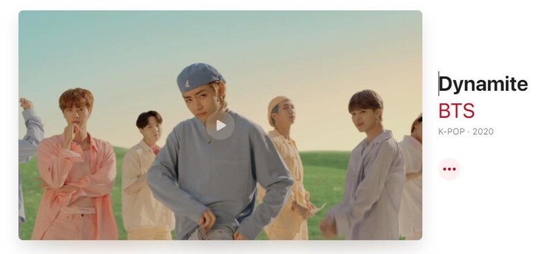 | ▲ This photo, captured from Apple Music's official website, shows BTS' "Dynamite" as No. 1 for most-streamed song. (PHOTO NOT FOR SALE) (Yonhap) |