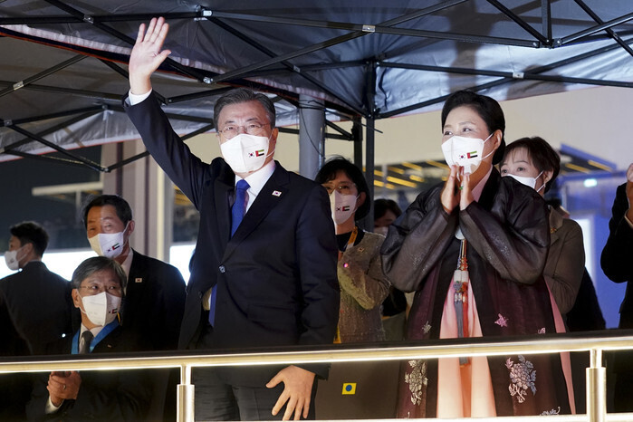 ▲ This file photo shows President Moon Jae-in and First Lady in Expo 2020 Dubai. (Yonhap)