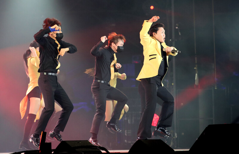 These photos show K-pop boy group Stray Kids and S. Korean singer PSY, who perform at Expo 2020 Dubai for “Korea’s National Day” ceremony.