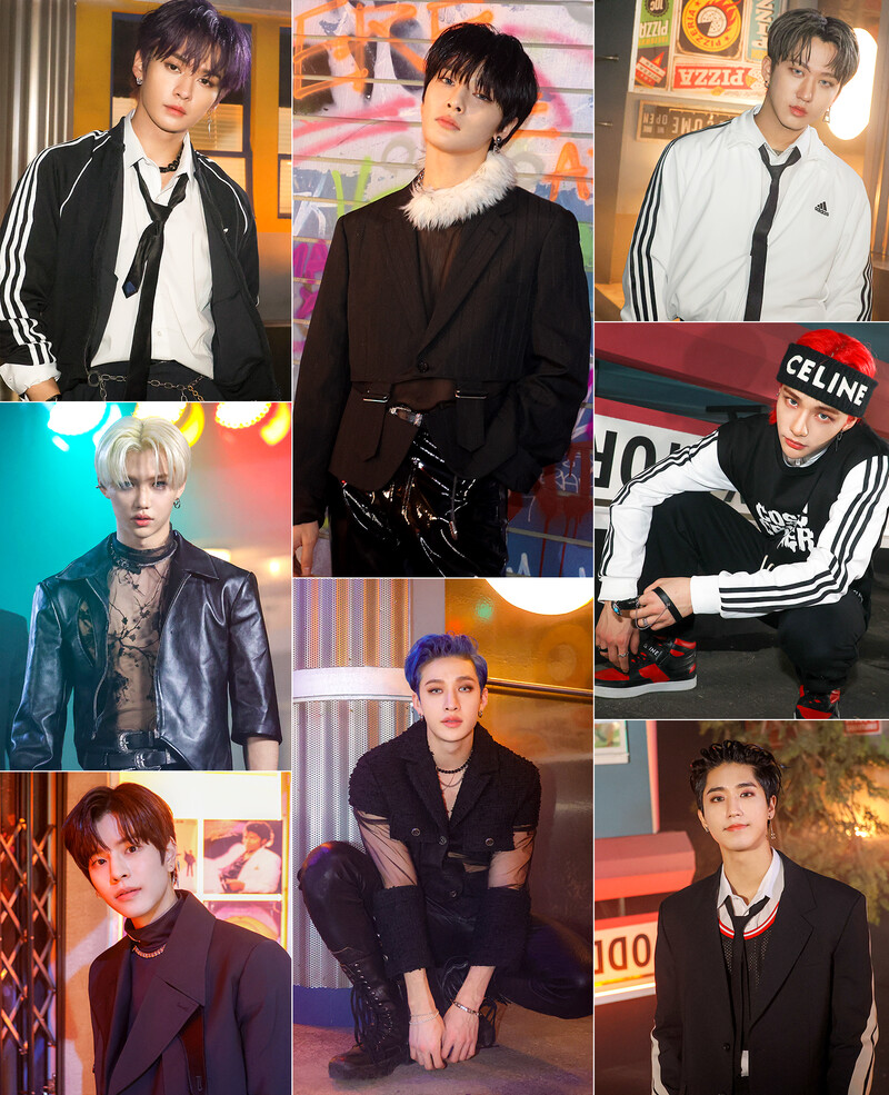 These photos, provided by JYP Entertainment, show the behind-the-scenes photos of K-pop boy group Stray Kids in their music video of the title song "MANIAC." The group released their new EP "ODDINARY" on March 18, 2022.