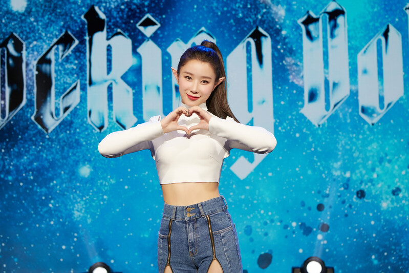 Roa, a member of K-pop rookie girl group Rocking doll poses for a photo during a showcase for the release of the group's deubt single album "Rocking Doll" at a concert hall in Seoul on Dec. 19, 2021. (Yonhap)