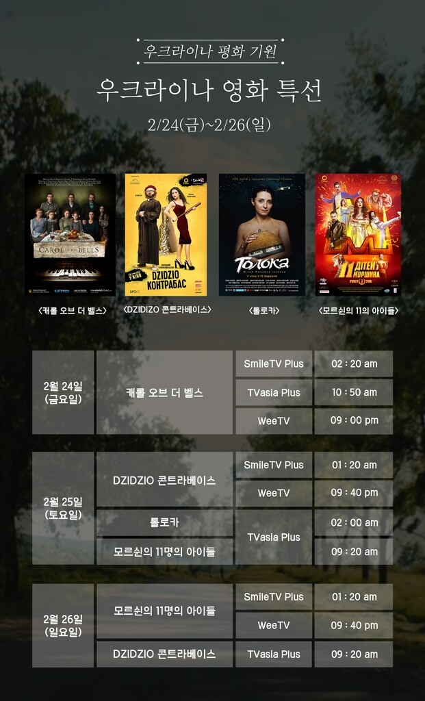 Ukrainian movie specials are to be broadcast for three days until the 26th on three channels: SmileTV Plus, TVAsia Plus, and WeTV.