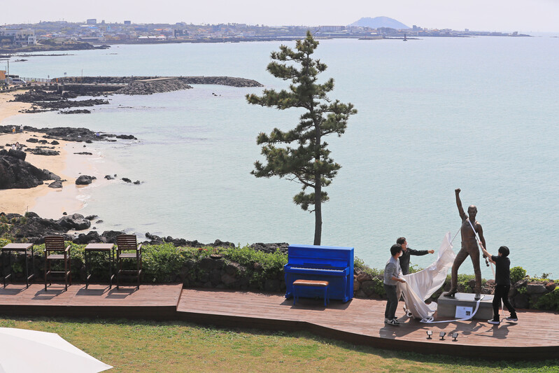 The 177-centimeter-high statue is the first replica of the one in Montreux, Switzerland. (Yonhap)