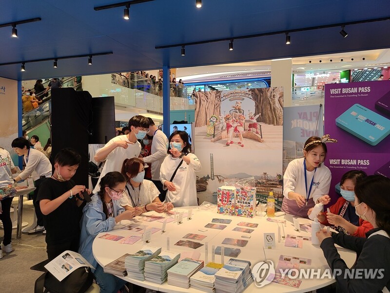 SEOUL March 27 (Yonhap) -- People who have gathered around at the East Point City, a shopping center located within Hang Hau, Hong Kong on March 25 shouted out the phrase “Lets visit South Korea Together !” loud and clear.