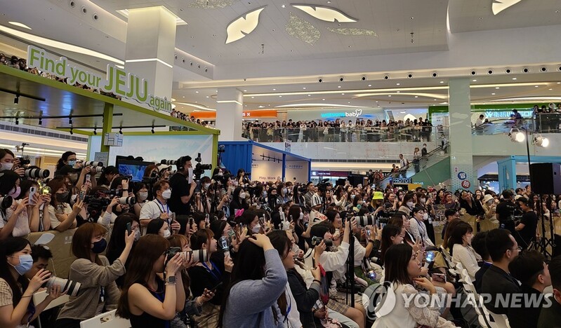 From cameras imbedded within smart phones, to professional photography equipments fans surrounded the area filled not only the first floor but also the fences within the second floor of the shopping center and the escalator watching the talk show and the artist’s performance which extended through about an hour.