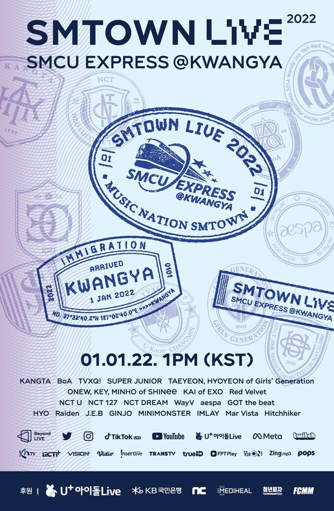 On Jan. 1, New Year’s Day, at 1 p.m., the singers from SM Entertainment, including Kangta, BoA, and the rookie aespa, will gather and unveil the SM’s free online concert “SMTOWN LIVE 2022 : SMCU EXPRESS@KWANGYA.”