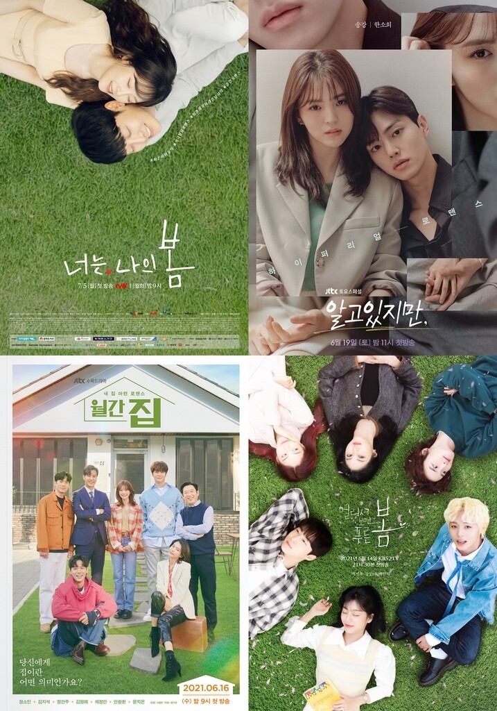 | ▲ This photo shows posters for dramas (clockwise) "You Are My Spring," "Nevertheless," "Monthly Magazine Home," and "At a Distance, Spring Is Green" provided by each respective broadcaster. (PHOTO NOT FOR SALE) (Yonhap) |