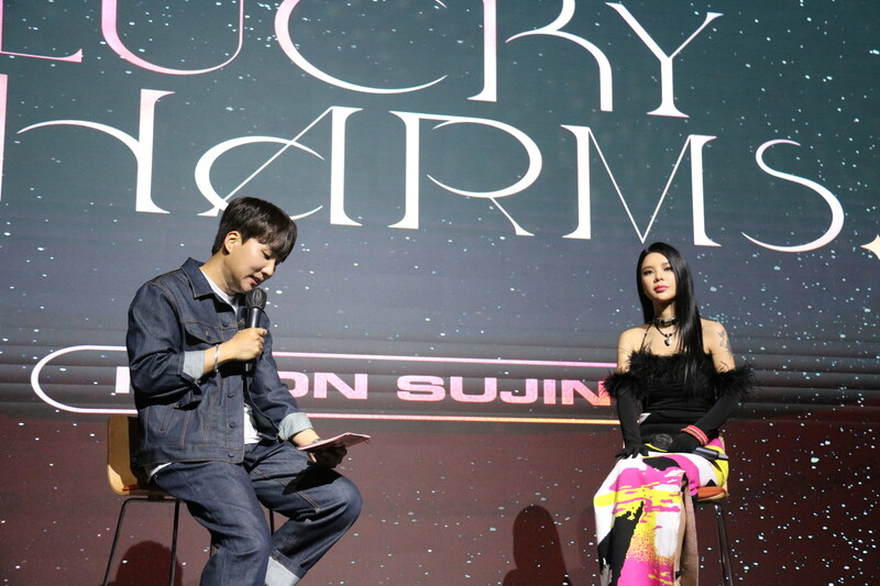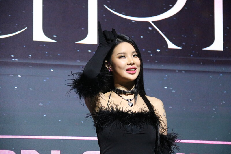 These file photos show singer Moon Su-jin at the media showcase of her 1st EP "Lucky Charms!" which was held on May 30th, 2022. (Korea Odyssey)