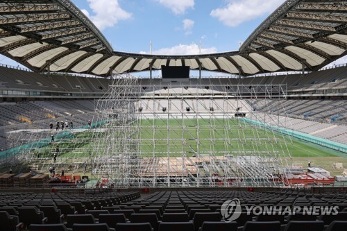 | ▲ Workers install a makeshift stage for the "K-pop super live" concert, the highlight event for the 2023 World Scout Jamboree, at Seoul World Cup Stadium in western Seoul on Aug. 9, 2023. The concert and the closing ceremony of the world gathering will be held at the stadium on Aug. 11. (Yonhap) |