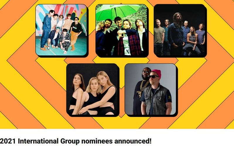 BTS was nominated for the International Group category for their hit song, "Dynamite." They will be up against rock band Foo Fighters, a sister trio band HAIM, hip hop duo Run The Jewels, and post-punk band Fontaines D.C.
