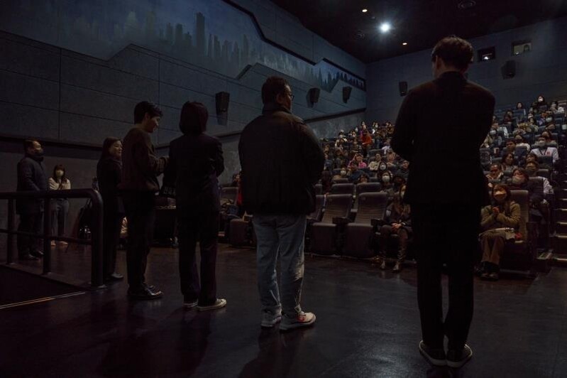 Netflix held a barrier-free theater screening the previous day at Lotte Cinema's Konkuk University entrance where you can watch "JUNG_E" with audio screen commentary and subtitles for the deaf.