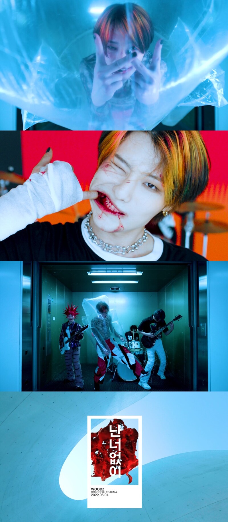 These photos, provided by Yue Hua Entertainment, show WOODZ's music video teaser for title song "I hate you," and the lyric posters of upcoming tracks in the singer's fourth mini-album "COLORFUL TRAUMA." WOODZ's new album will drop May 4 at 6 p.m.