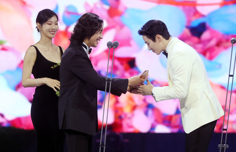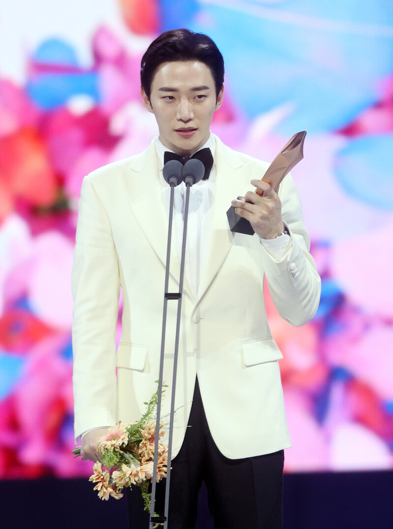 These photos, provided by Baeksang Arts Awards, show S. Korean actors receiving awards at the 58th Baeksang Arts Awards held at the KINTEX convention center in Goyang, Gyeonggi Province, on May 6, 2022.