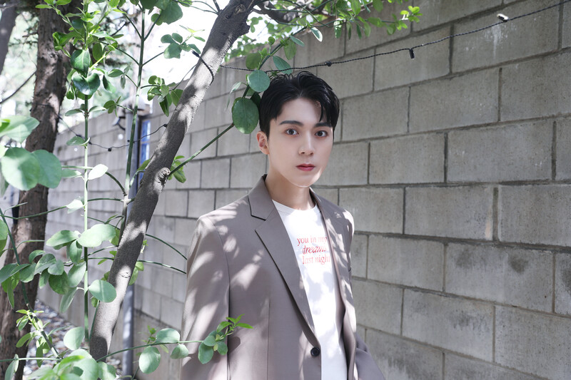 These photos show K-pop group JUST B's group and individual images taken in an interview with Yonhap News Agency, which was held on April 8, 2022, at a Cafe Sming, Seoul.