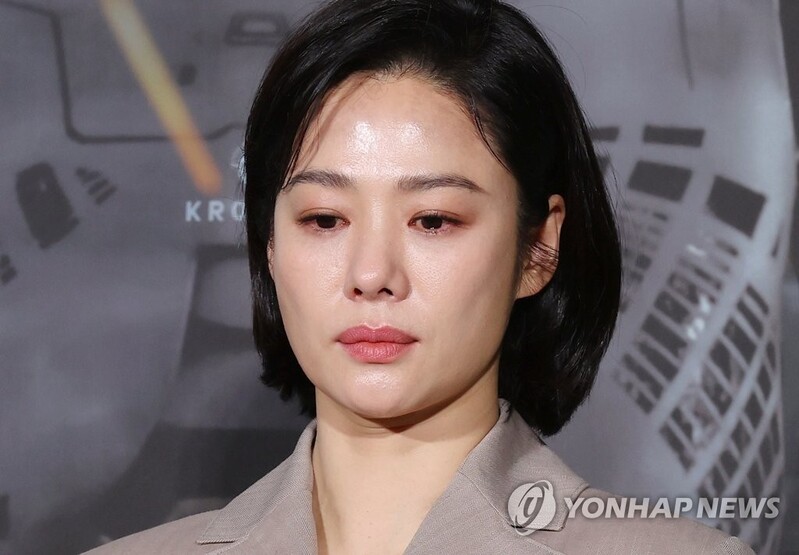 | ▲This photo, shows, actress Kim Hyun-joo bursting into tears throughout the press conference of 'Jung_E.' (Yonhap) |