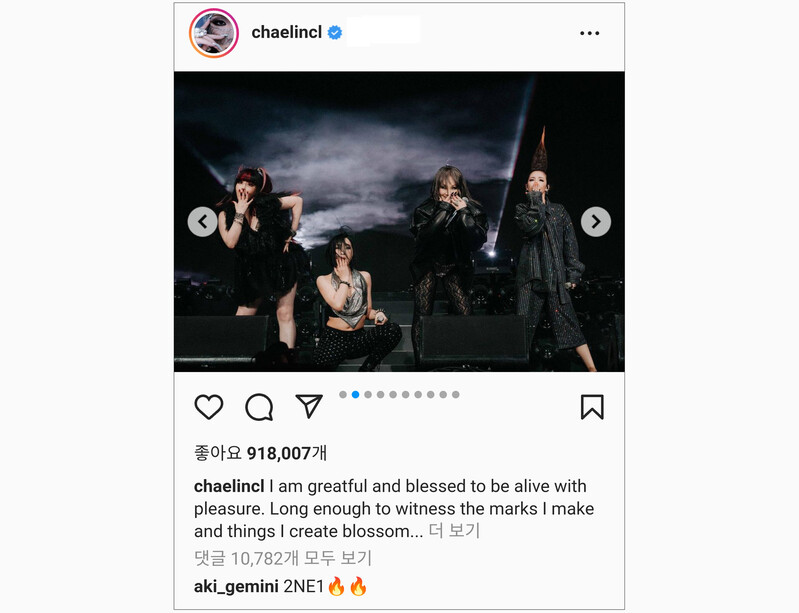 These photos, captured images from the official accounts of CL's instagram and Twitter, show K-pop girl group 2NE1's CL, who updated her Instagram regarding the group's recent appearance at Coachella for 88rising's "Head In The Clouds Forever."