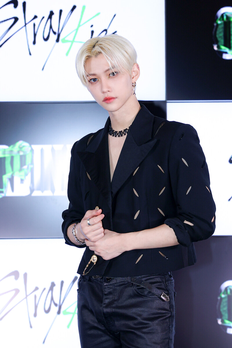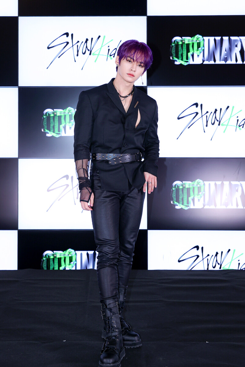 These photos, provided by JYP Entertainment, show K-pop boy group Stray kids members, who pose for the camera during an online press conference to promote their second EP album "Oddinary" on March 18, 2022. (PHOTO NOT FOR SALE) (Yonhap)