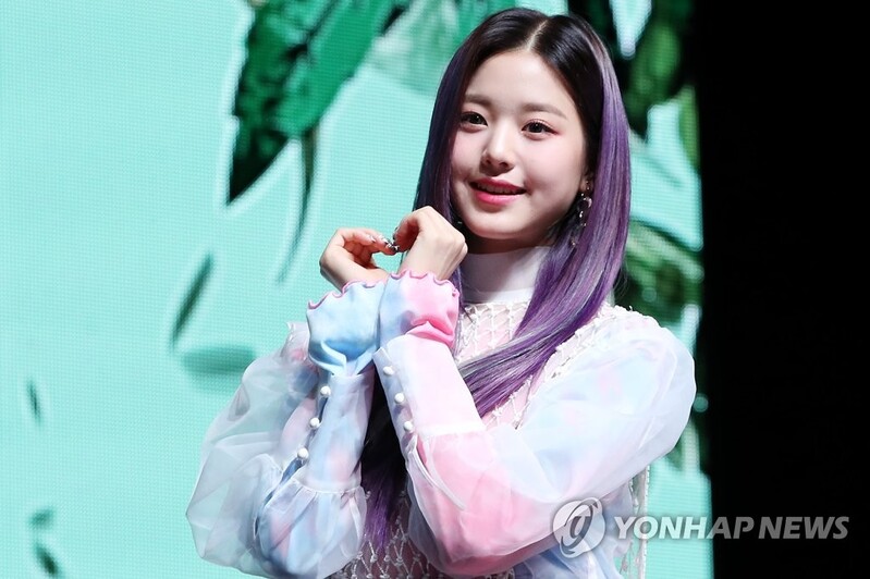 | ▲ Jang Won-young, a member of South Korean project girl group IZ*ONE, poses for a photo during a showcase for the group's second album "HEART*IZ" at a concert hall in Seoul on April 1, 2019. (Yonhap) |