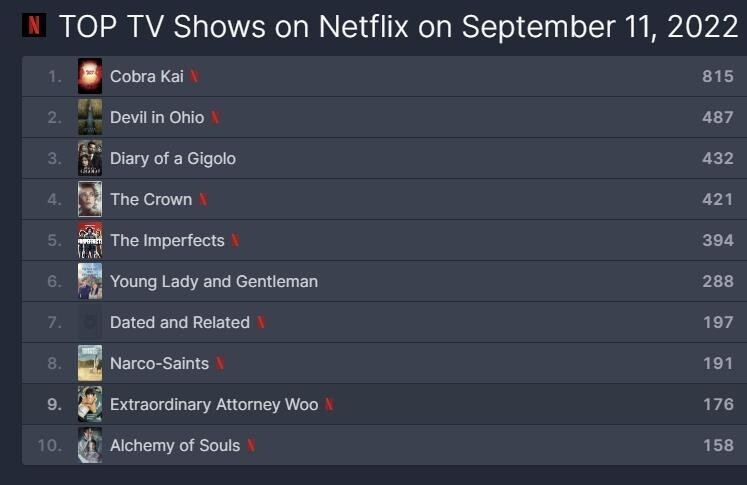 According to an online ranking site Flix Patrol on Monday, The movie ranked eight in the Netflix TV program category as of the previous day. It has been two days since the episodes were released on sept. 9.