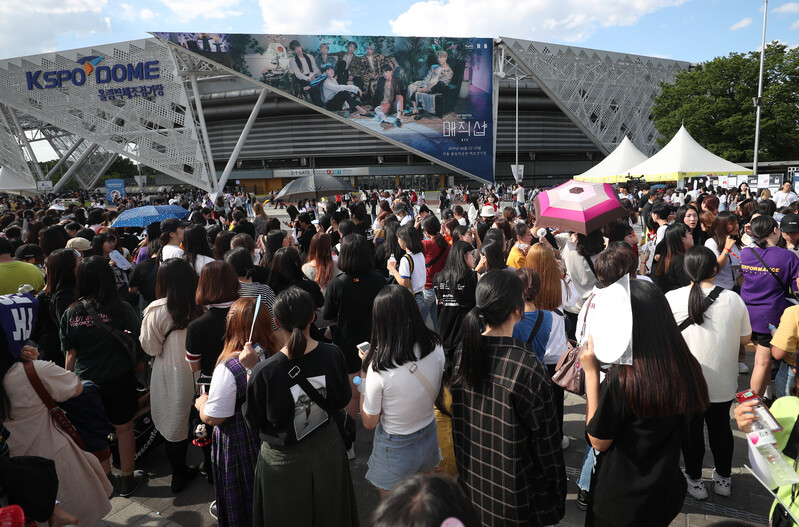 These photos show Olympic Stadium at Jamsil Sports Complex in Seoul crowded with ARMY(BTS’ fan club name), who came for the concert held on Mar. 10, 2022.