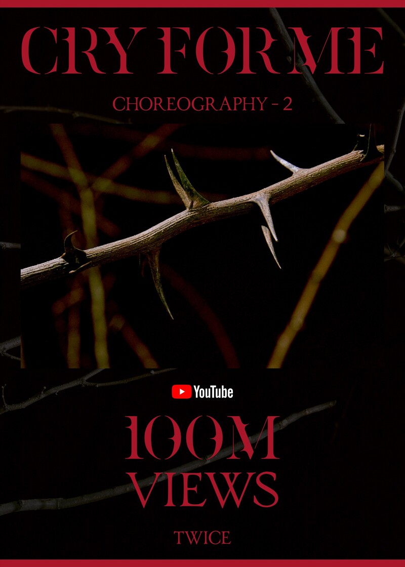 | ▲ This photo, provided by JYP Entertainment, marks 100 million YouTube views for K-pop act TWICE's choreography video "CRY FOR ME." (PHOTO NOT FOR SALE) (Yonhap) |