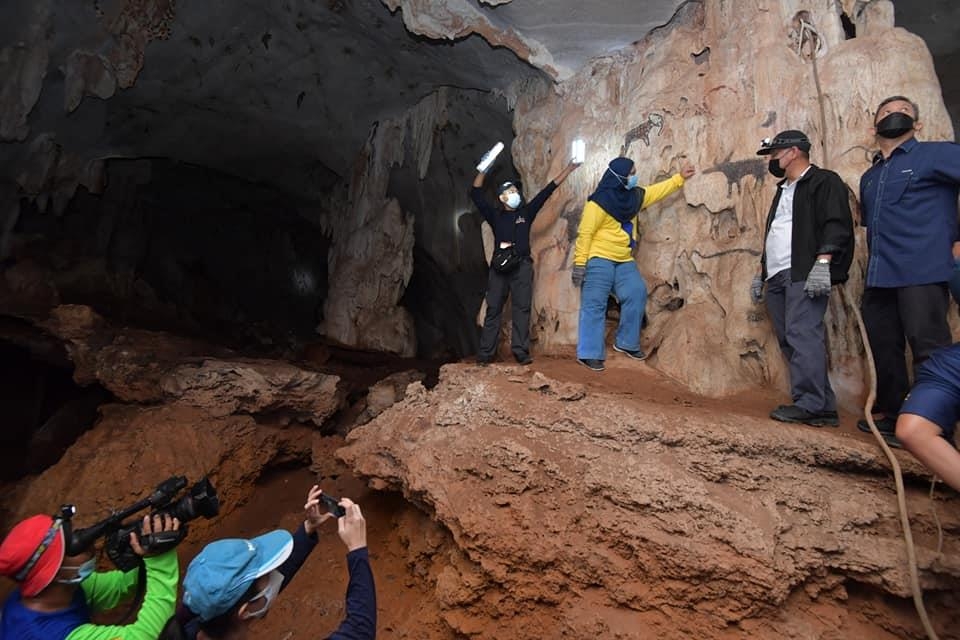 | ▲ 지난 14일 동굴 벽화를 언론에 공개한 모습 [말레이시아 국립유산부 페이스북·재판매 및 DB 금지] |