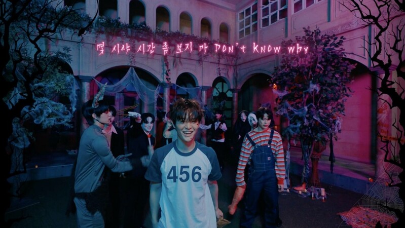 In the video, the 12 members were each disguised as Dracula, Joker, Chucky, a death angel and a goblin and performed a relay live of “BE WITH ME” in Halloween version.