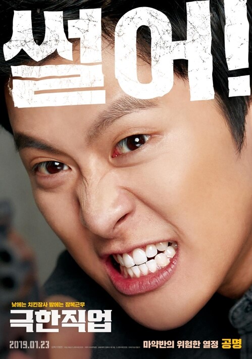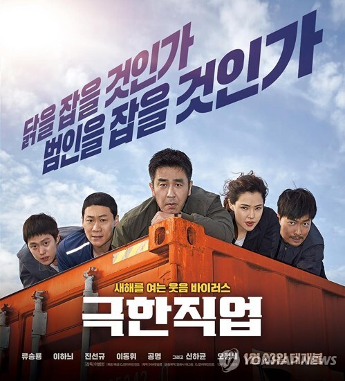 | ▲ This photo, provided by CJ Entertainment (the fim's distribution company) shows the poster of the movie "Extreme Job." From the left are Gong Myoung, Jin Sun-kyu, Ryu Seung-ryong, Lee Ha-nee, Lee Dong-hwi. (PHOTO NOT FOR SALE) (Yonhap) |