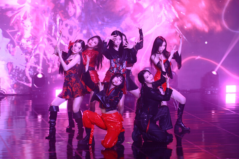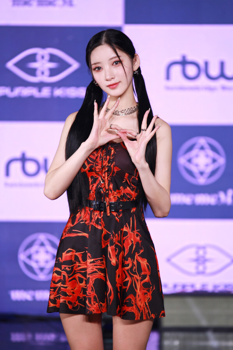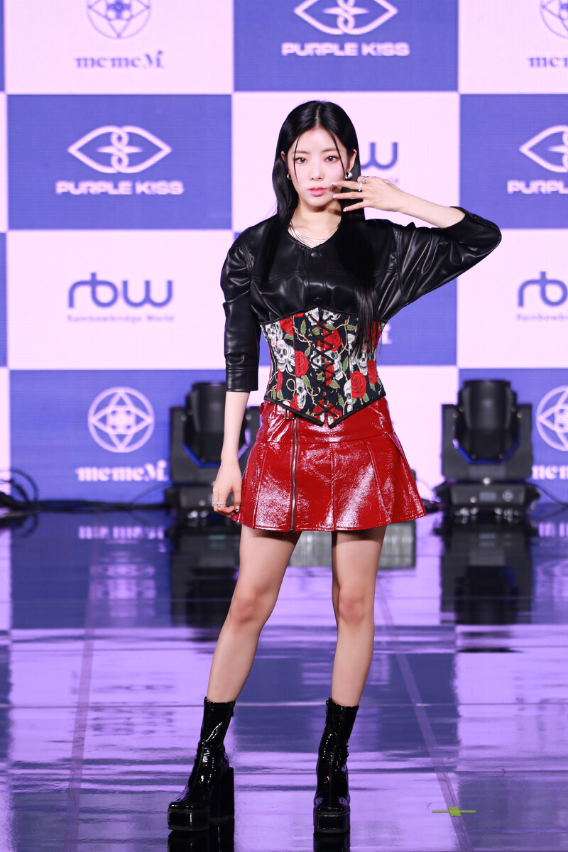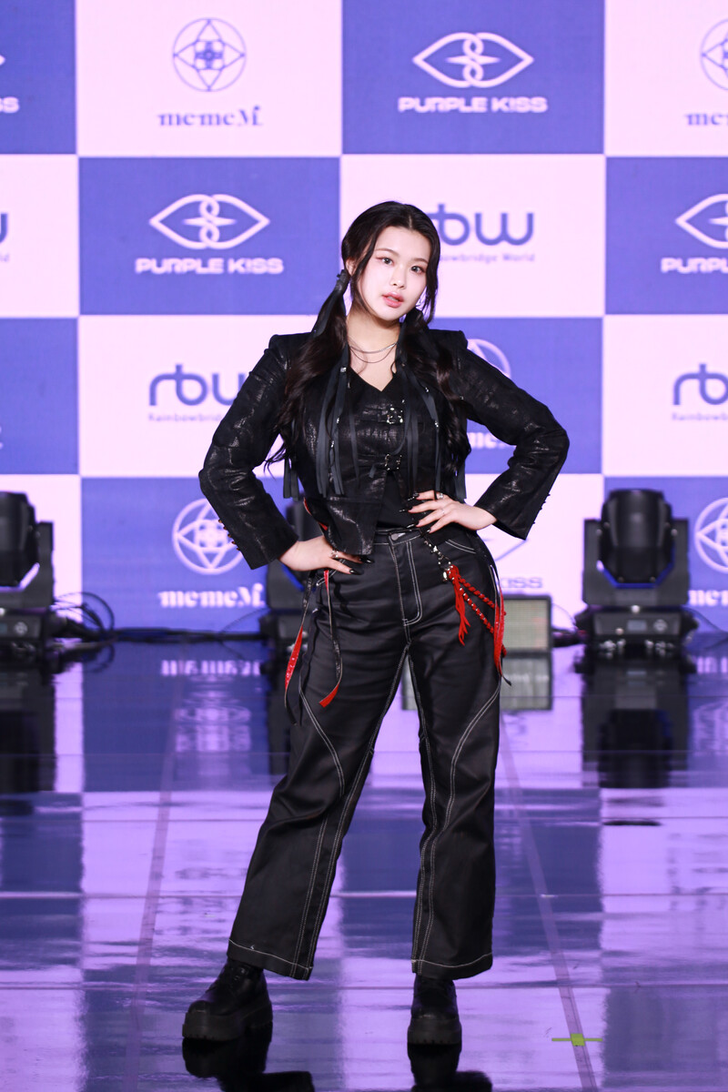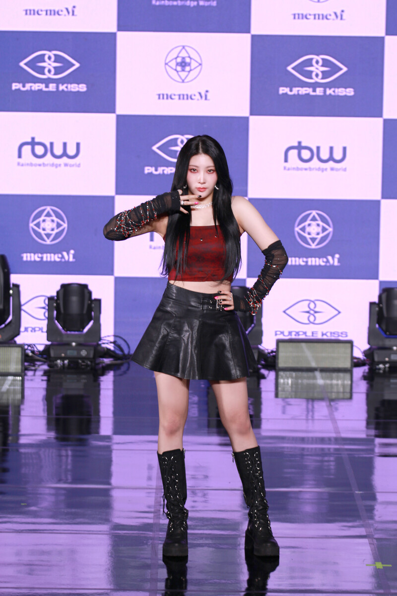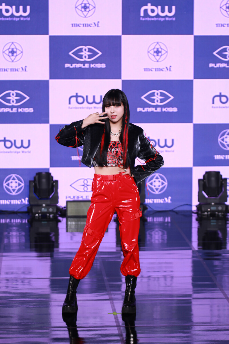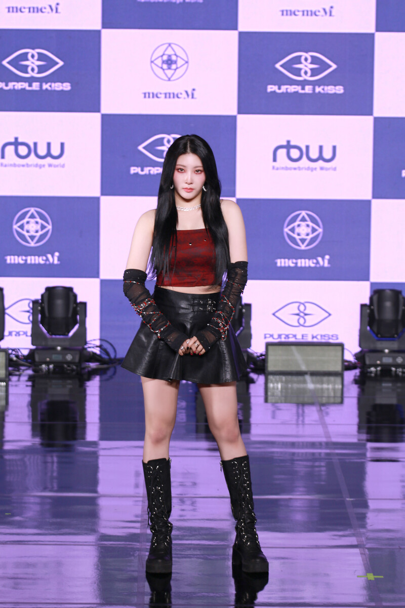 These photos, provided by RBW, show K-pop girl group PURPLE KISS, which has revealed the on-site images from the comeback showcase of the title song “memeM,” which dropped on Mar. 29.