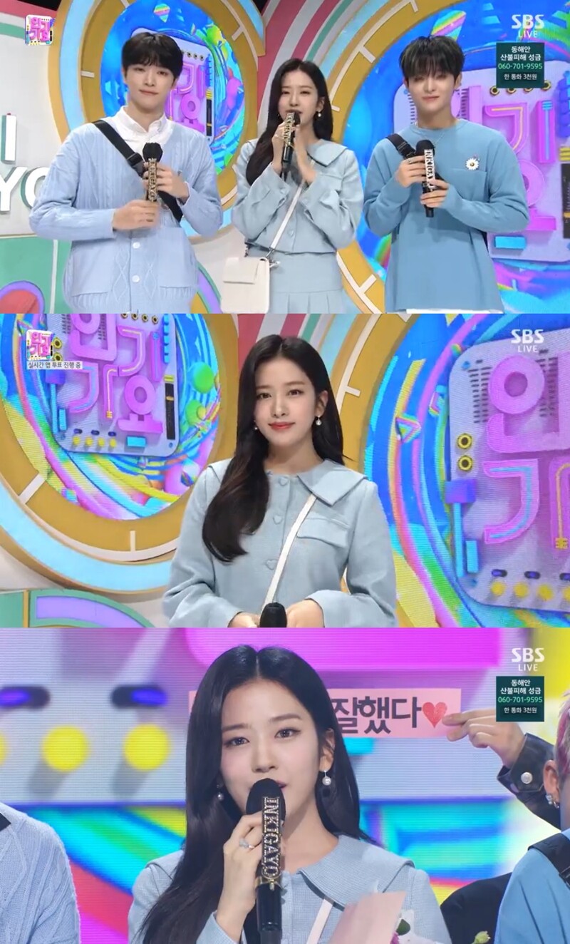 These photos, captured images from SBS “Inkigayo” and provided by Starship Entertainment, show IVE’s Yu-jin, who performed as “Inkigayo” MC since March, 2021, saying good-bye to her fans after a year of performances on Mar. 27.