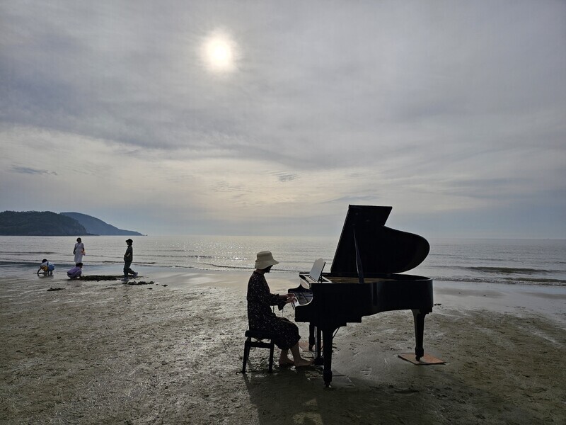 축제장을 찾아가니 100+4대의 피아노가 무대와 모래언덕, 바닷가와 정원 곳곳에 놓여 있었다. 축제장 옆으로 수석공원과 흰모래 언덕이 이국적이다. 양산 해변은 모래가 고운 것을 넘어 진흙에 가깝다. 바닷물에 발을 담가 걸으니 자연의 일부로 느껴진다. 나는 누군가를 위하여 살아갈 때 삶을 더 잘 살아내는 면이 있다.