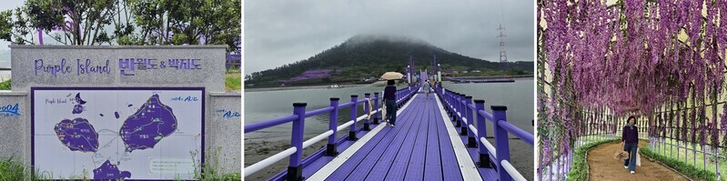 I prayed for rain so that I wouldn't have to work on Monday, and it did rain. Walking on the purple deck connecting Banwol Island and Bakji Island, I marveled at the hopeful diligence of the elderly islanders. They poured their hearts into representing their villages with a single color. The whole island was purple, and people wore purple clothes. The purple island village was peaceful and reminiscent of a fairy tale.