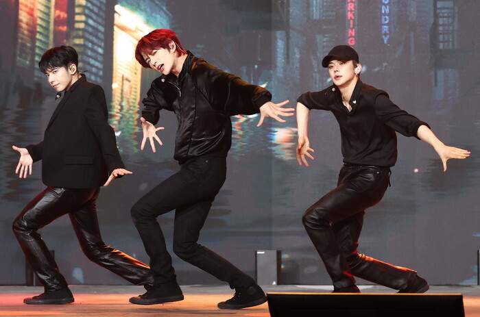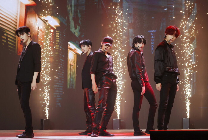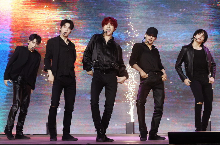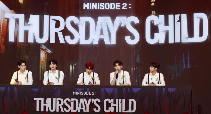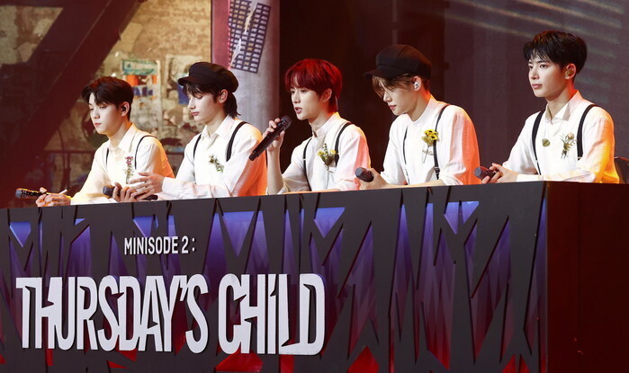 These photos, provided by Big Hit Music, show K-pop boy group TOMORROW X TOGETHER(TXT) performing during a media showcase for its fourth mini album "minisode 2: Thursday's Child" at a concert hall in Seoul on May 9, 2022.