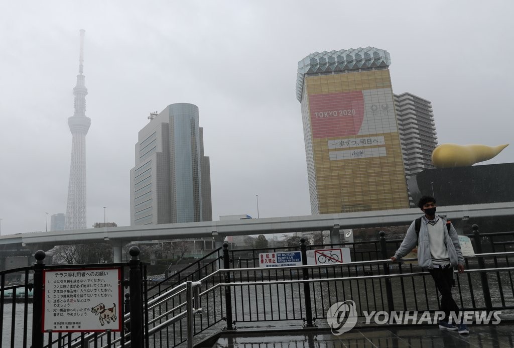 | ▲ 코로나19 긴급사태 해제 도쿄…시계 불량 (도쿄=연합뉴스) 이세원 특파원 = 신종 코로나바이러스 감염증(코로나19) 긴급사태 전면 해제 전날인 21일 오후 일본 도쿄도(東京都) 다이토(台東)구의 한 유람선 선착장 인근에서 나들이객이 기념사진 촬영을 위해 포즈를 취하고 있다. 강 건너편 건물에 도쿄 올림픽·패럴림픽 홍보물이 설치돼 있으며 비가 내리는 가운데 관광 명소인 '도쿄 스카이 트리'(왼쪽 뾰족한 건물)가 흐리게 보인다. 2021.3.21 sewonlee@yna.co.kr |