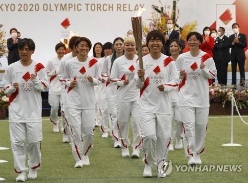 첫 봉송 주자로 동일본대지진이 발생했던 2011년 축구 여자 월드컵 독일대회에서 우승한 일본 대표팀 '나데시코 재팬' 멤버들이 나섰다.