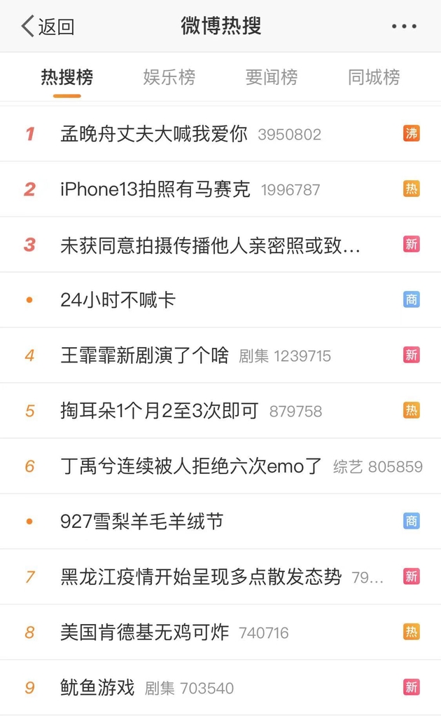 | ▲ '#오징어 게임#' 해시태그가 26일 웨이보 인기검색 9위에 올라있다. [사진 웨이보 스크린샷. 재판매 및 DB 금지] |