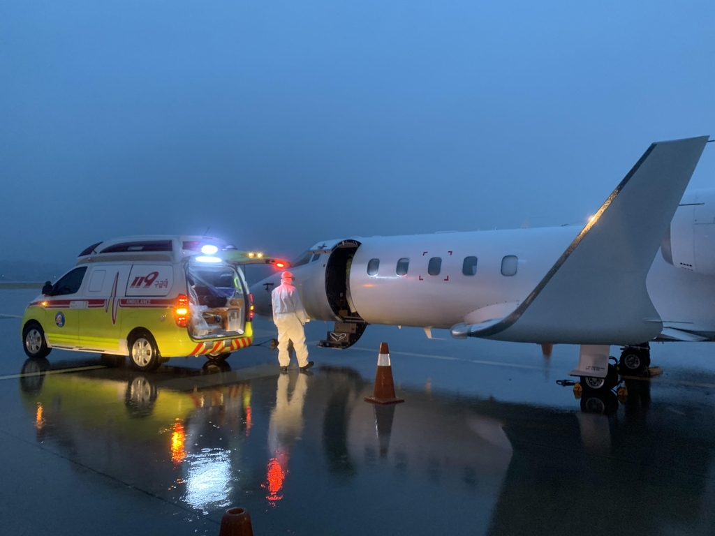 | ▲ 27일 저녁 신태용 감독을 태우고 인천공항에 도착한 에어앰뷸런스 [플라잉닥터스 제공=연합뉴스] |