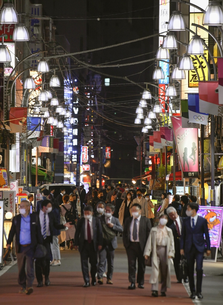 | ▲ (도쿄 교도=연합뉴스) 일본 정부가 도쿄 등 4개 광역지역을 대상으로 신종 코로나바이러스 감염증 억제를 위한 긴급사태 재선포를 결정한 23일 저녁 도쿄 번화가 신바시(新橋) 주변이 행인들로 붐비고 있다. |