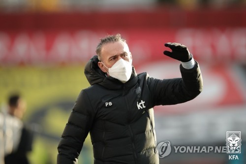 | ▲ 지시하는 벤투 감독 (서울=연합뉴스) 17일 오후 오스트리아 마리아 엔처스도르프의 BSFZ 아레나에서 열린 한국과 카타르의 축구대표팀 평가전. 파울루 벤투 감독이 선수들에게 지시를 하고 있다. 2020.11.17 [대한축구협회 제공, 재판매 및 DB 금지] photo@yna.co.kr |