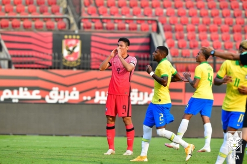 김학범 감독이 이끄는 한국 23세 이하(U-23) 축구대표팀은 14일 이집트 카이로의 알살람 스타디움에서 열린 U-23 친선대회 브라질과의 2차전에서 전반 7분 이동경(울산)의 선제골 이후 3골을 내리 내줘 1-3으로 졌다.