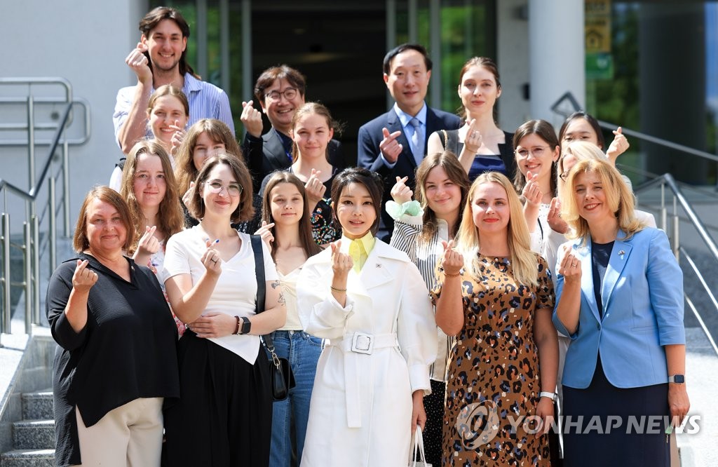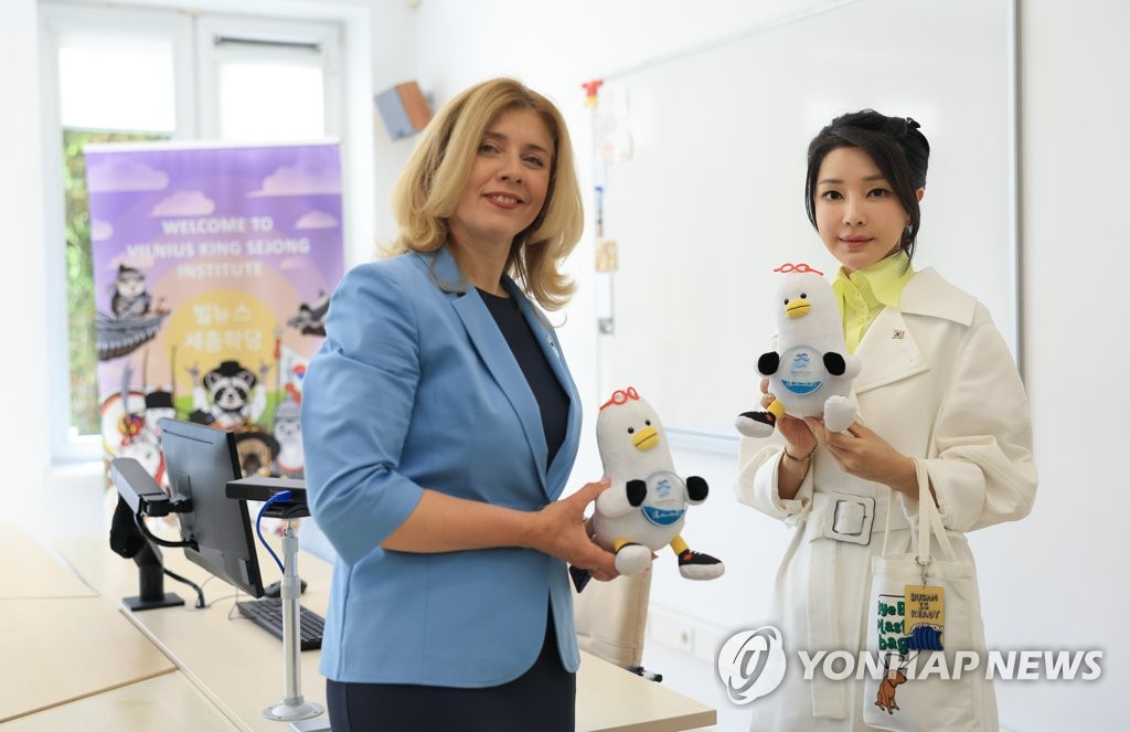 VILNIUS, July 11 (Yonhap) -- First lady Kim Keon Hee on Tuesday visited a Korean language institute in Lithuania and promised to help increase student exchanges between the two countries, the presidential office said.