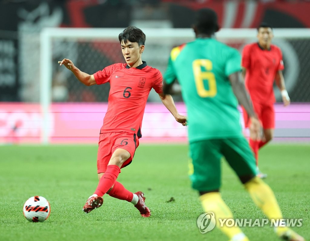 | ▲ 패스 시도하는 황인범 (서울=연합뉴스) 김도훈 기자 = 27일 오후 서울 마포구 서울월드컵경기장에서 열린 한국 대 카메룬 축구 대표팀의 평가전에서 황인범이 패스를 시도하고 있다. 2022.9.27 superdoo82@yna.co.kr |